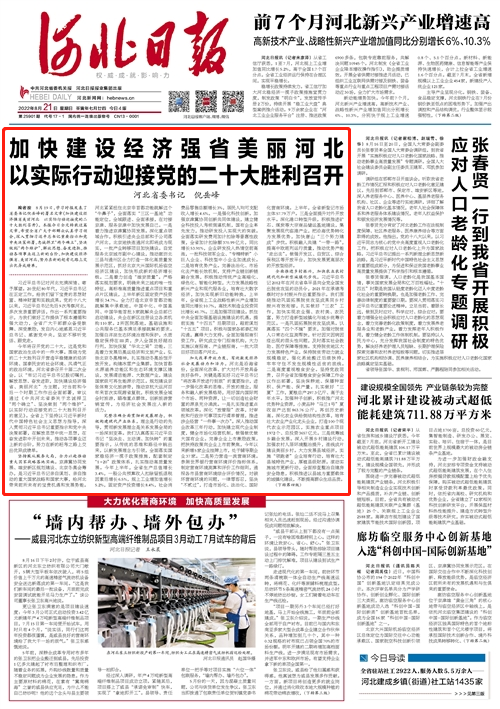 加快建设经济强省美丽河北 以实际行动迎接党的二十大胜利召开