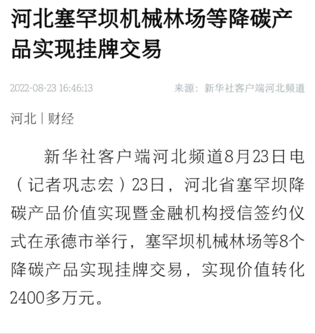 新华社、人民网等多家主流媒体对塞罕坝机械林场等降碳产品实现挂牌交易进行报道