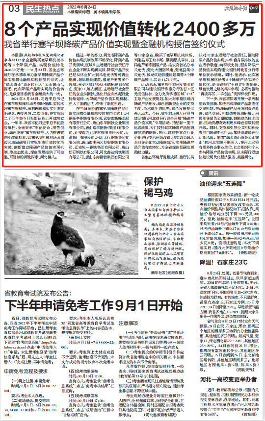 ▲河北日报( 2022年8月24日01版)