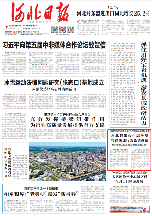 河北省出台生态环境轻微违法行为免罚办法(河北日报)