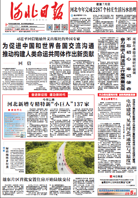 截至7月底,河北今年完成2287个村庄生活污水治理