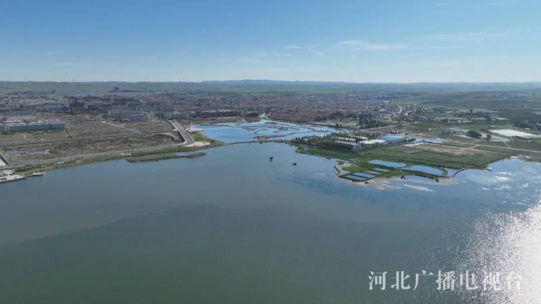 天高云低、碧波荡漾、鱼翔浅底、鸥鹭翱翔。空中俯瞰,蓝色的康巴诺尔国家湿地公园像一颗晶莹剔透的明珠镶嵌在坝上草原。这座占地总面积达5521亩的湿地公园,仅水面面积就有3300亩,占整个湿地公园面积的近60%,相当于整个西湖的三分之一,湖水最深处达3.5米,是河北省距县城最近的一处湿地公园。