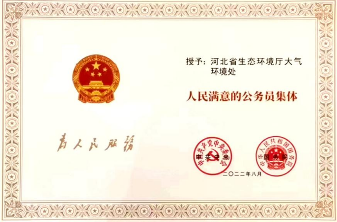 杏彩(中国)官方网站 大气环境处被授予全国“人民满意的公务员集体”称号