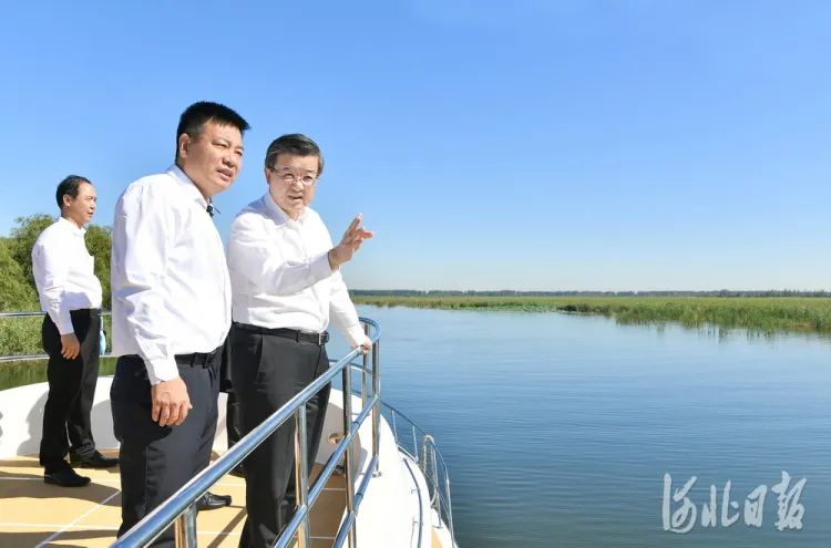 9月7日,省委书记倪岳峰在雄安新区调研。这是倪岳峰在淀区听取白洋淀生物多样性保护情况汇报。河北日报记者赵海江摄