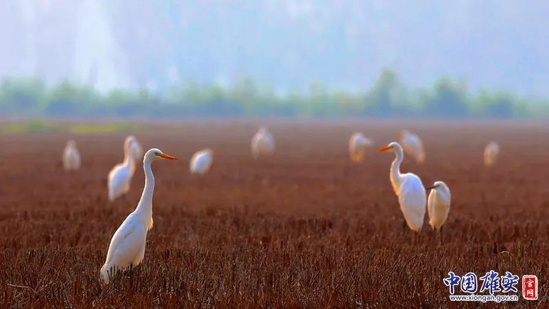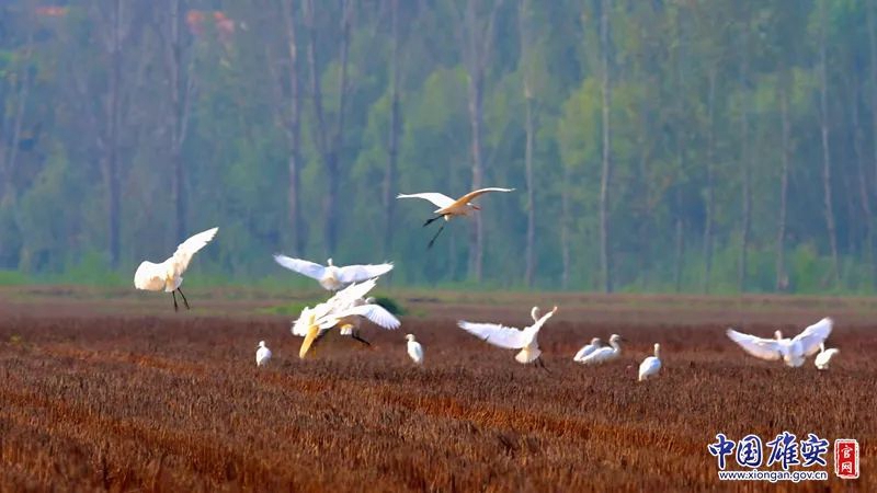 近日,在雄县和安新两县爱鸟护鸟志愿者联合开展的白洋淀野生鸟类监测活动中,数百只中白鹭组成的鸟群栖息在一片湿地中,时而伫立休息、“梳妆打扮”,时而觅食嬉戏,时而展翅飞翔,宛如一群翩翩起舞的白衣仙子,充满了诗情画意。