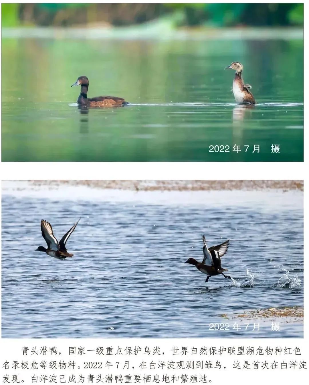 今年夏天,全球极危物种青头潜鸭将白洋淀作为繁殖地,意味着白洋淀生态环境上了一个新台阶。