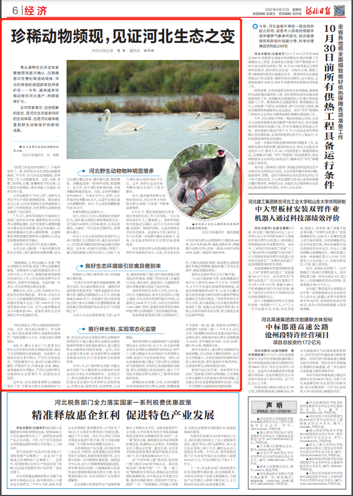 珍稀动物频现,见证河北生态之变