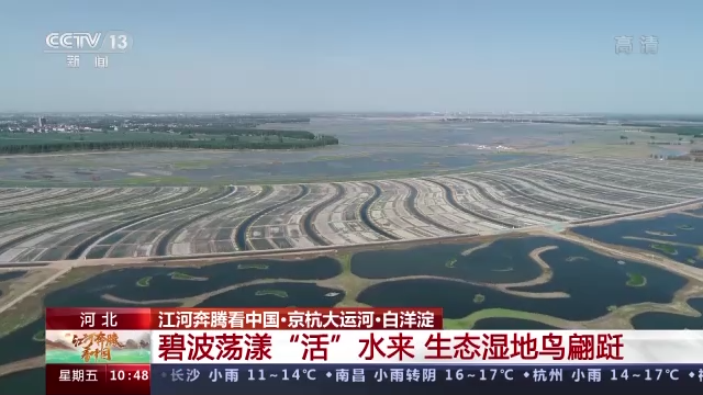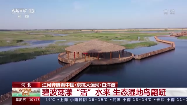 京杭大运河能够实现全线通水,得益于水资源的保护和综合利用。就在距离沧州不远的白洋淀,通过生态补水和科学保护,水域面积逐年扩大,生态环境持续向好。这里不仅成了运河生态带上的一颗绿色明珠,更是为雄安新区的千年计划铺陈了绿色底色,为京津冀协同发展迈出了生态优先、绿色发展的步伐。