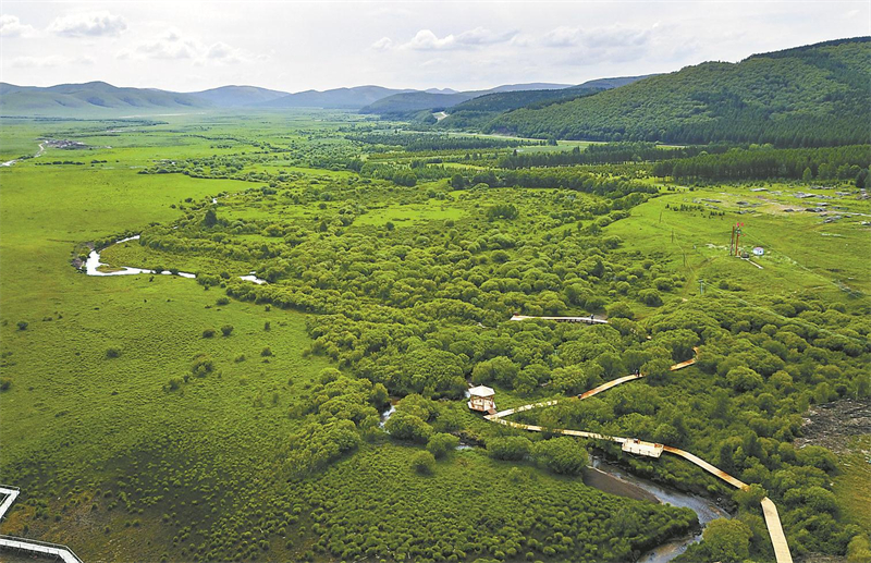 △河北此次发现细鳞鲑的吐力根河,河道蜿蜒曲折,远远望去像一条玉带飘落在坝上草原。(资料片) 河北日报记者赵海江、霍艳恩摄