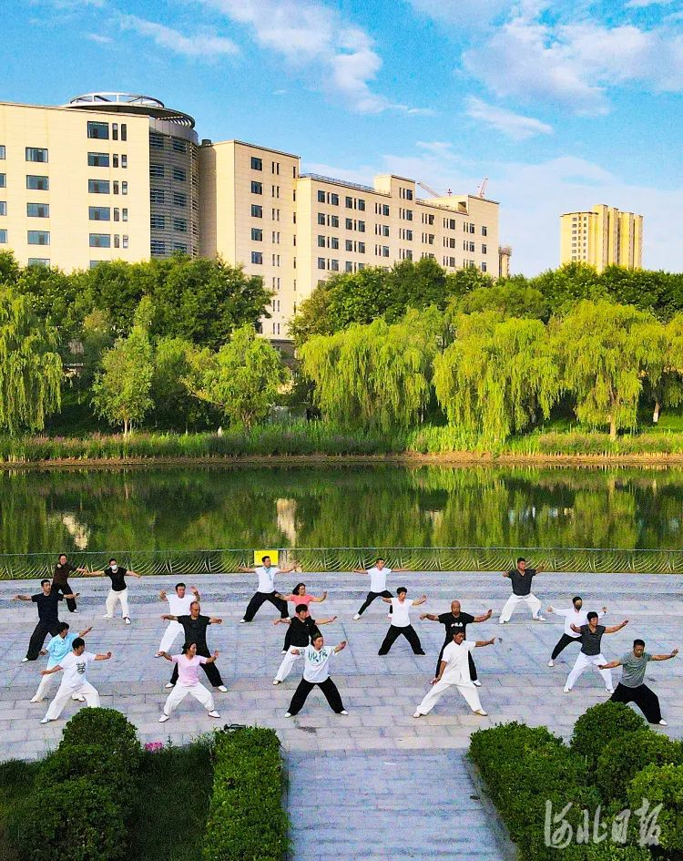 蓝天白云下,霸州市民在公园打拳健身。河北日报记者赵永辉摄