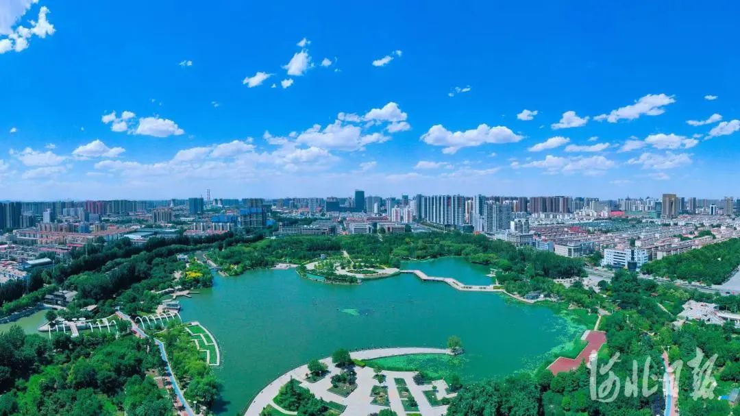 蓝天白云下的邯郸市龙湖公园。河北日报记者史晟全摄