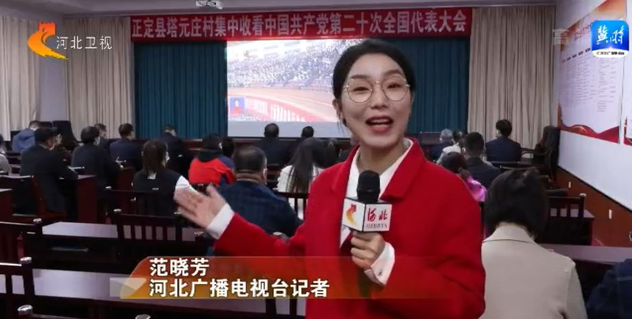 这里是石家庄正定县塔元庄村,此时此刻,村里的党员干部和村民代表齐聚党员活动室,怀着激动的心情,集中收看党的二十大开幕会盛况。