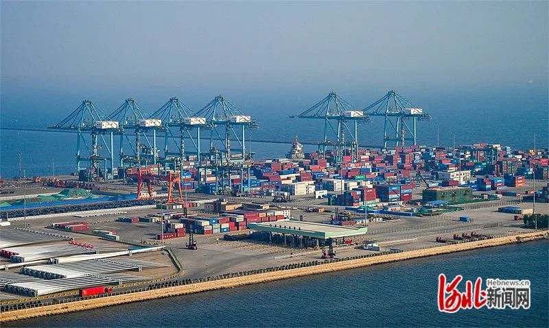 秦皇岛港集装箱散货码头位于汤河入海口附近,各类货物由此运往世界各地。