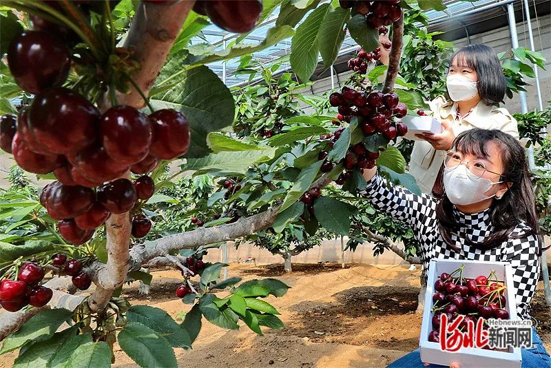 汤河流经的海港区海阳镇采摘园里,游客在采摘樱桃。秦皇岛市大力推进现代农业与乡村旅游相结合,助力乡村振兴。
