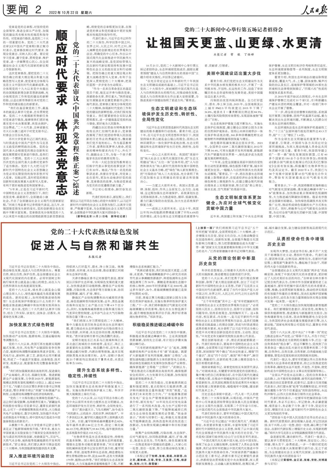 党的十八大以来,绿水青山就是金山银山理念深入人心,绿色越来越成为高质量发展的底色。新的征程上,如何持续推进绿色转型生态系统保护和修复以什么为抓手积极稳妥推进碳达峰碳中和如何落实到具体生产中连日来,党的二十大代表们认真学习报告,结合工作实际,谈变化、说体会、话落实,共谋绿色发展之路。