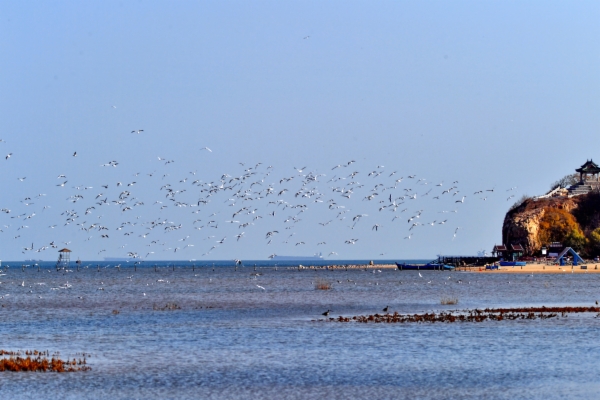 寒露之后,秋意渐浓,秦皇岛北戴河鸽子窝大潮坪上鸥鸟成群,众多观鸟爱好者用镜头记录这片碧海蓝天间独特的生态景观。
