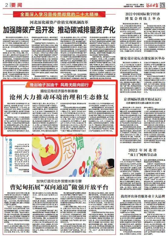 贯彻落实党的二十大报告提出的“推动绿色发展,促进人与自然和谐共生”要求,沧州树牢“绿水青山就是金山银山”理念,大力推动环境治理和生态修复,协同推进降碳、减污、扩绿、增长,推进生态优先、节约集约、绿色低碳发展,以绿为底描绘沿海经济强市新画卷。