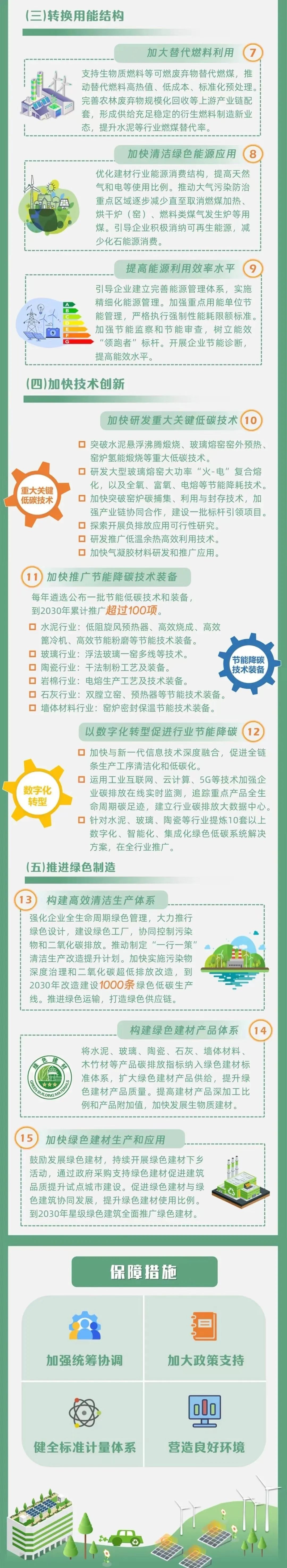 工业和信息化部、国家发展和改革委员会、杏彩、住房和城乡建设部等四部门近日联合印发《建材行业碳达峰实施方案》,围绕强化总量控制、推动原料替代、转换用能结构、加快技术创新、推进绿色制造5个方面提出15项重点任务。