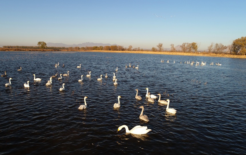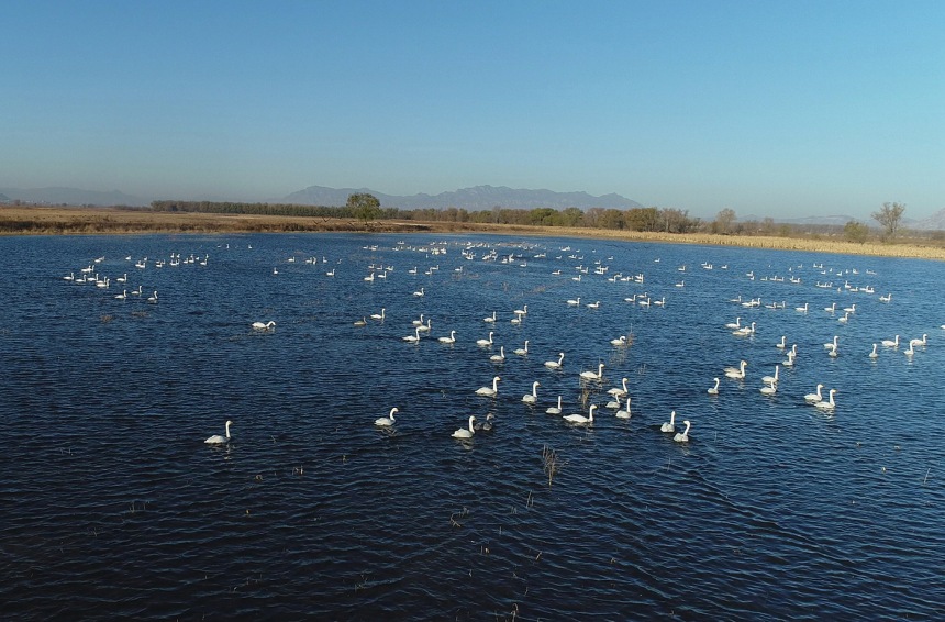 官厅水库国家湿地公园迎来成群天鹅。孙慧军摄