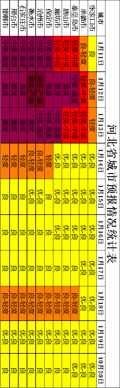 经河北省生态环境应急与重污染天气预警中心与中国环境监测总站、省气象灾害防御和环境气象中心联合会商,预计2023年1月中旬(11日~20日),期间11日~13日,我省地面受高压后部偏南风影响,扩散条件转差,湿度较高,存在区域性逆温,污染持续累积,中南部和东部城市可能出现重度污染过程,14日,受较强西北风影响,污染逐步改善。