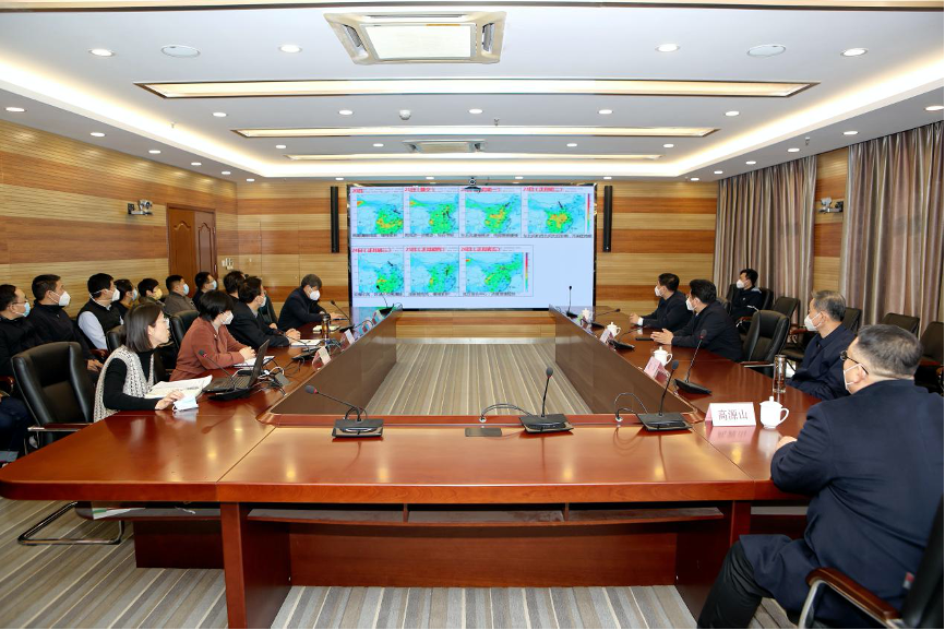 1月20日,杏彩(中国)官方网站 党组书记、厅长李晋宇在大气指挥调度中心视频慰问各地大气调度值班值守人员。