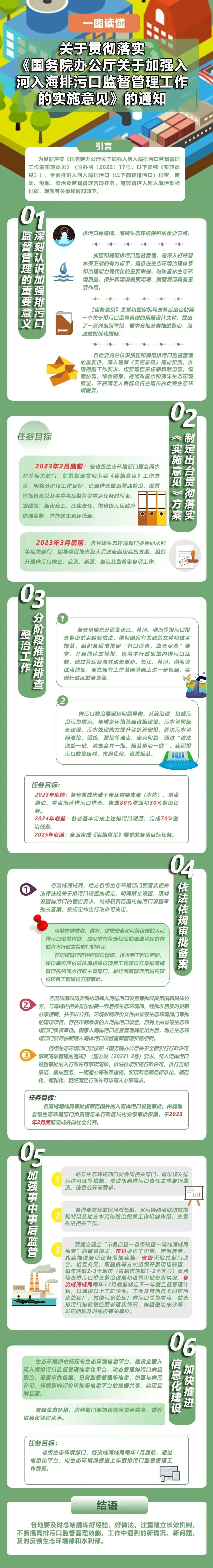 《通知》是贯彻落实《国务院办公厅关于加强入河入海排污口监督管理工作的实施意见》(以下简称《实施意见》)的重要举措,从深刻认识加强排污口监督管理的重要意义、制定出台贯彻落实《实施意见》方案、分阶段推进排查整治工作、依法依规审批备案、加强事中事后监管、加快推进信息化建设六个方面,明确细化了要求。