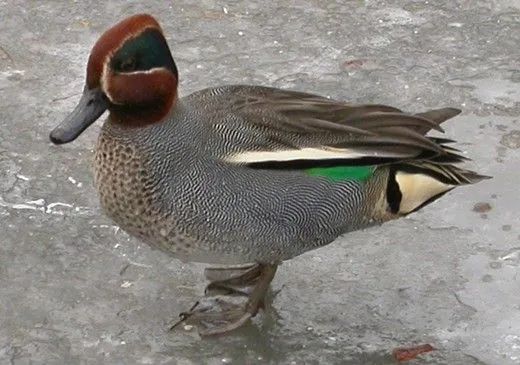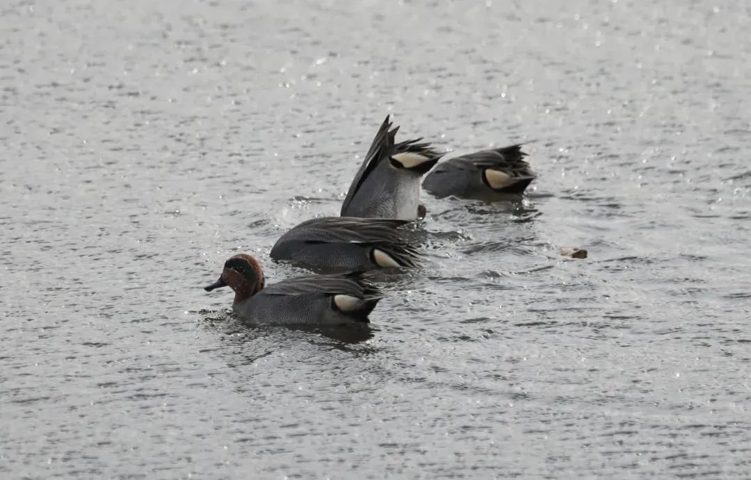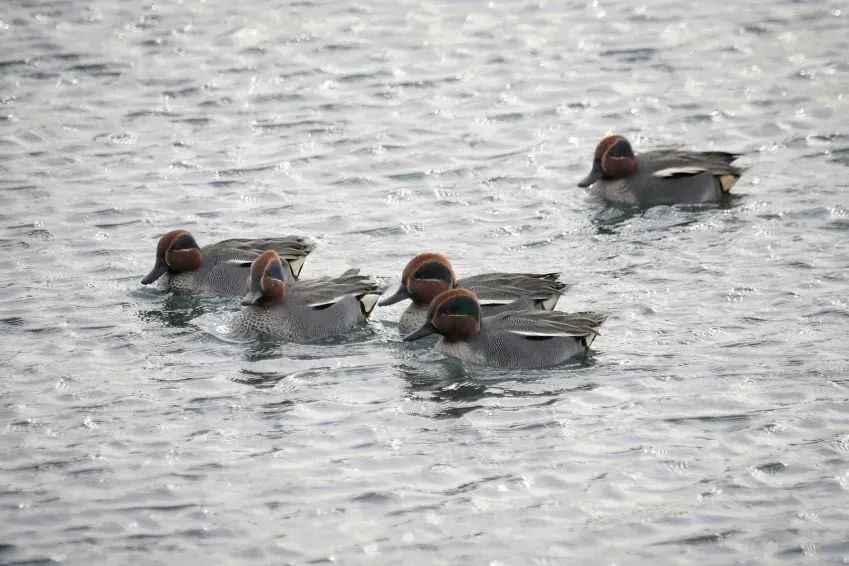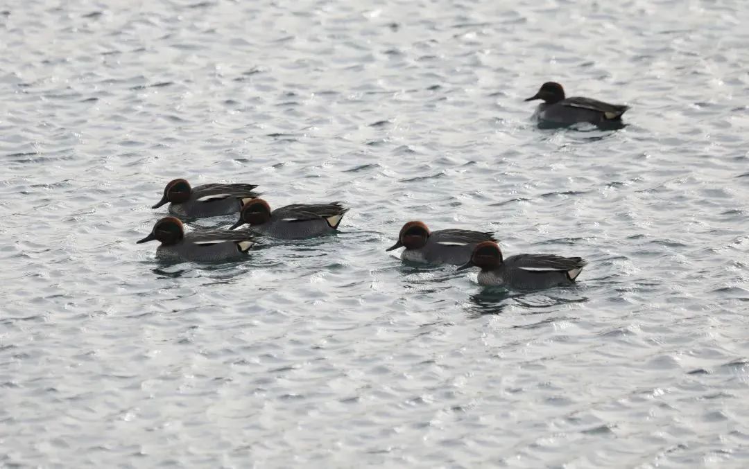 据了解,这群鸭子叫绿翅鸭,又名小凫(fú)、小麻鸭、小水鸭等,它的名字正是来源于翅膀上一块亮丽的翠绿色羽毛,这块羽毛只有在张开翅膀时才能看得清楚,因为与周围羽毛颜色反差很大,像镜子一样亮闪闪的,故而称为“翼镜”。