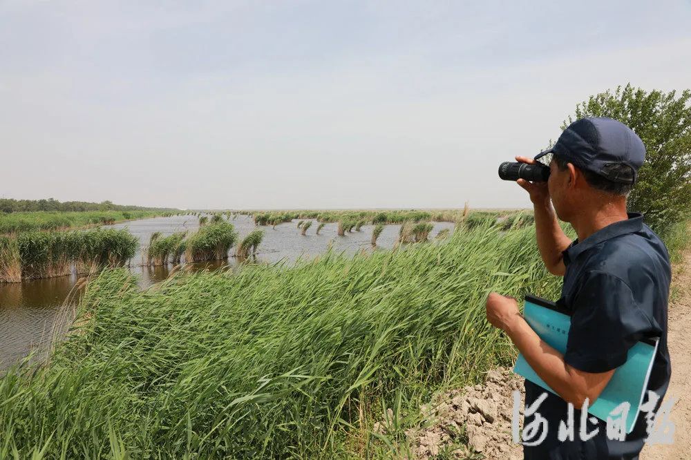 6月8日,南大港湿地巡护员冯国强正在观测鸟类状况。河北日报记者苑立立摄