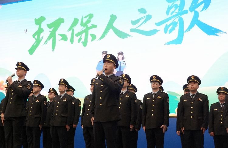 6月5日,北京市大兴区与河北省廊坊市以“美丽中国我先行——兴廊携手走进美丽空港”为主题,在大兴区临空经济区联合举办六五环境日主场活动,展现京冀协同推进生态文明建设的创新成果。图为两地生态环保铁军齐声高唱《环保人之歌》,展现兴廊两地“共饮一河水、同护一片天”的生态担当。