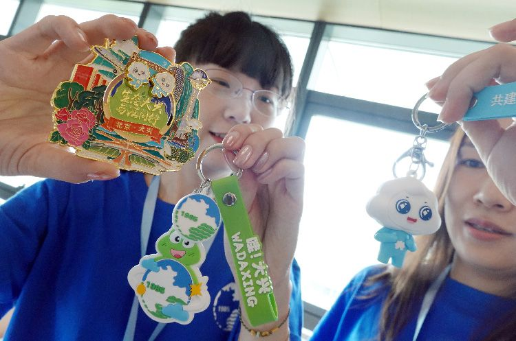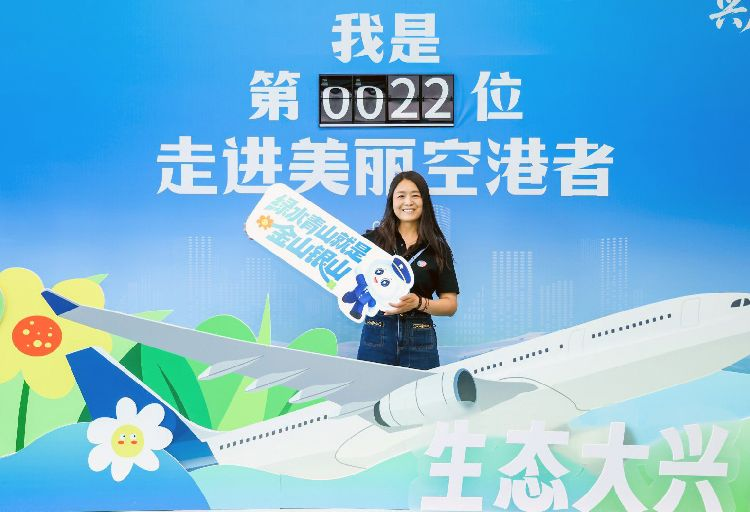 观众在“穿过森林去机场”兴廊两地生态成果展上打卡。大兴区生态环境局与廊坊市生态环境局联合发布“共建美丽空港”倡议书,两地生态治理协同进入新阶段。