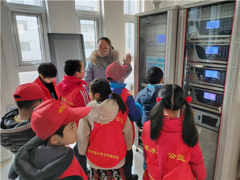 向小学生讲解空气质量自动监测设备了解空气质量的实际状况