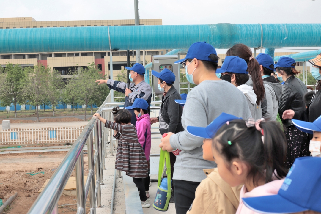 接着,带领家长和小朋友们近距离参观污水处理厂的生产区域,实地了解整个污水处理流程,亲眼目睹生活污水经过管道流到了污水处理厂后,再清澈的神奇变化。