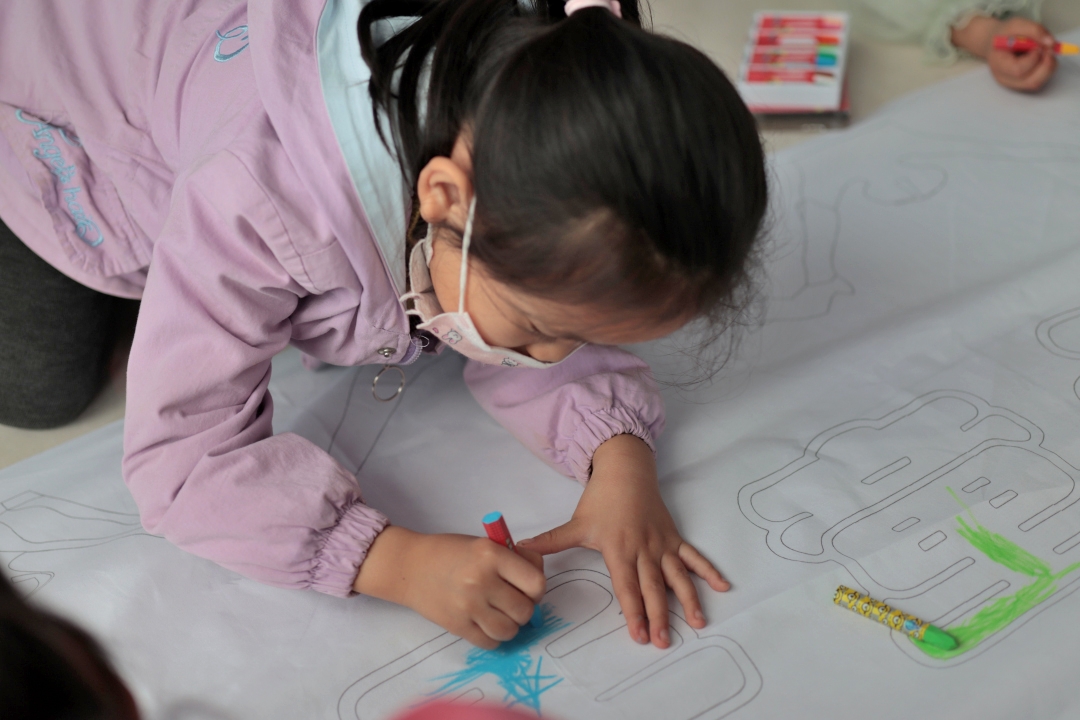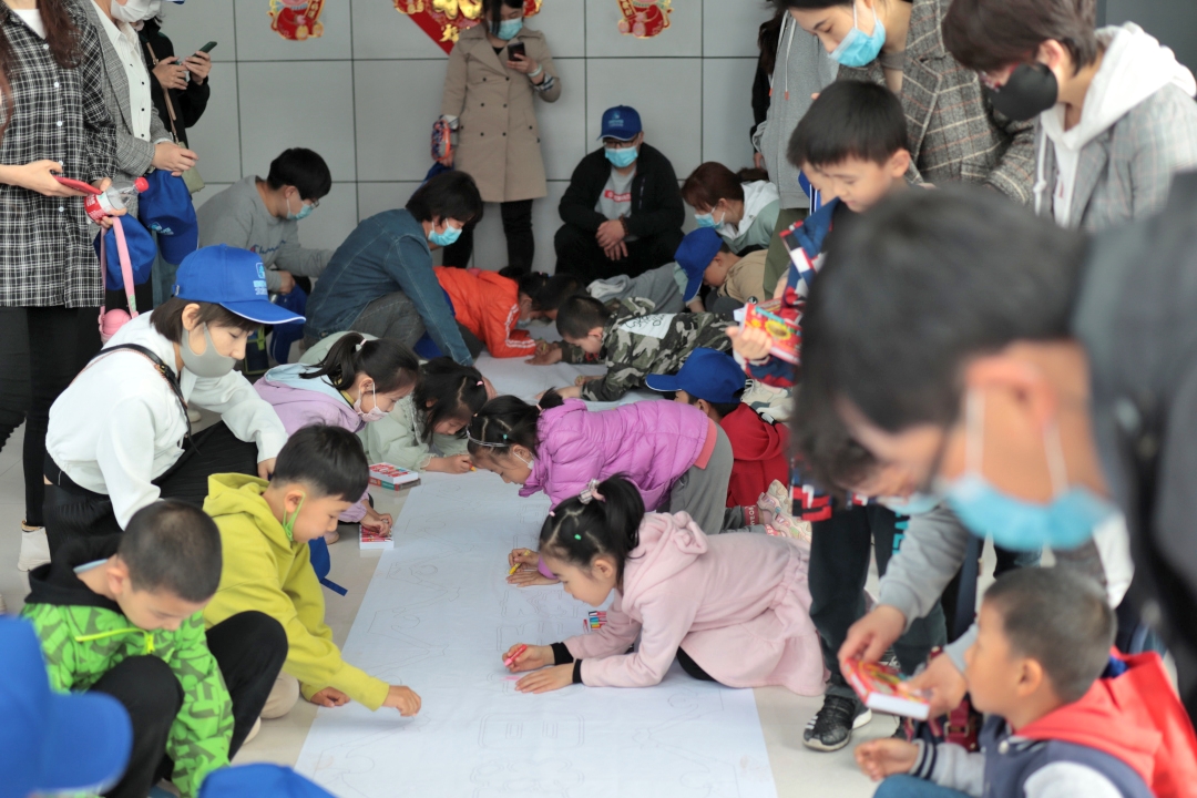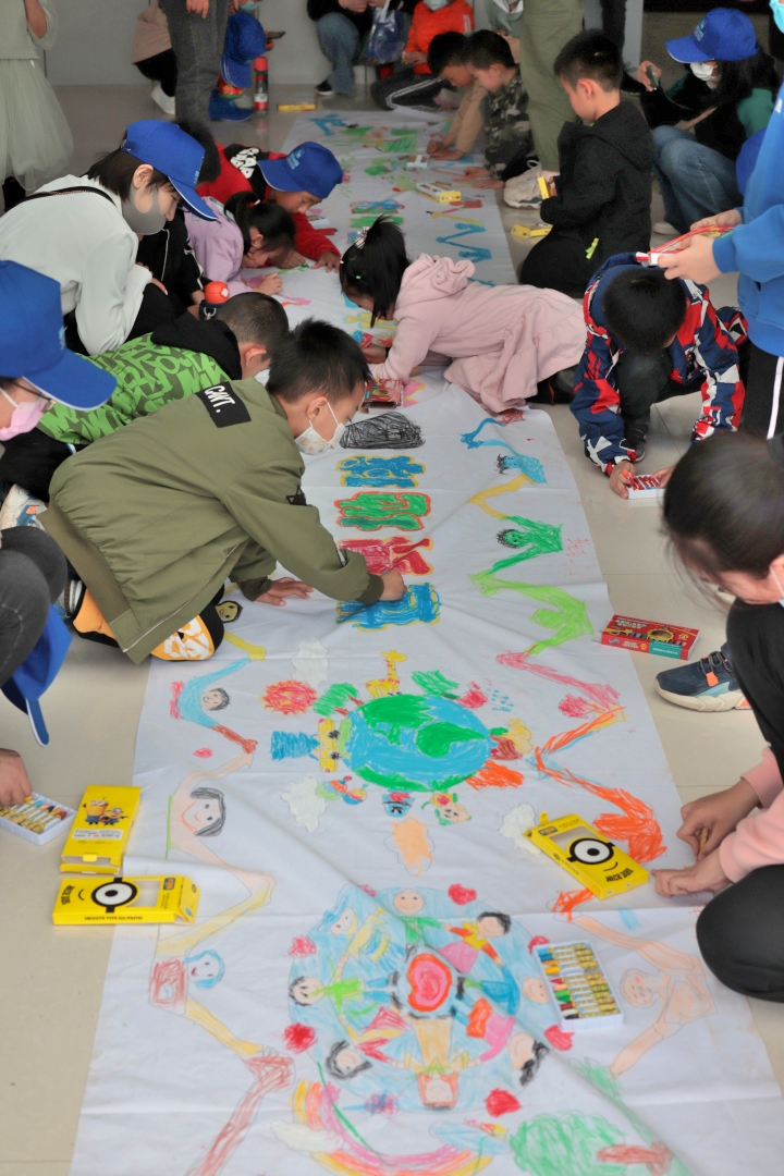 参观完毕后小朋友们纷纷拿出画笔开始在画卷上有模有样地画了起来,为地球家园勾勒出幸福底色,以此呼吁小朋友更加珍视自然资源,共同守护地球的绿水青山,为保护生态环境贡献一份微薄的力量。