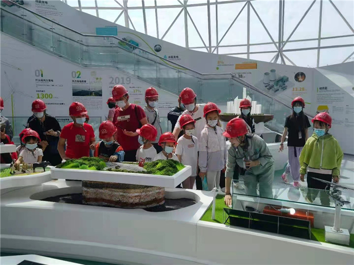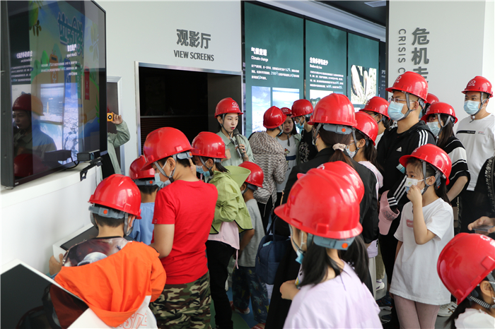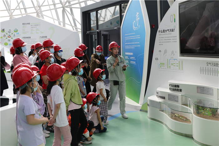色彩明亮、充满设计感的厂区,从一开始就颠覆了小朋友和家长们对于垃圾处理厂的传统认知。在工作人员及讲解员的陪同下,首先来到了环保科普馆依次参观了“人与自然区”、“大气污染区”、“危机走廊”、“太阳能发电小屋”、“新能源区”、“能源未来沙盘”等板块。给小朋友和家长们带来震撼的地方是垃圾仓和拥有吨级承重的垃圾吊车。隔着厚厚的玻璃可以看到数万吨的垃圾像是一座山一样“躺”在大家脚下。在讲解员的讲解下,小朋友们不但学的津津有味,还积极举手发言,向讲解员提出自己的看法。