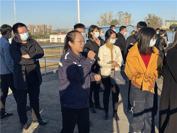 培训班一行在总经理刘亚飞的带领下先后参观和考察了进水口、氧化沟、二沉池、出水口。学员们对污水处理厂工艺运行情况显示出极大的兴趣,并逐一进行了仔细的询问,不断提出相关的意见和见解,尤其看到处理过后清澈的出水后,培训班学员们对污水处理厂运行成绩给予了高度评价,纷纷表示将在后期的学习期间要结合污水处理厂的发展建设和日常工作经验认真学习实践,力争学有所思,观有所悟。