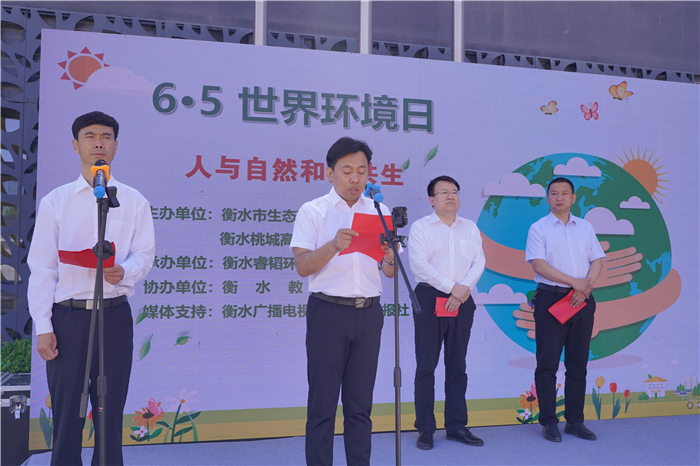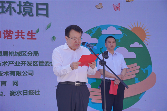 本次活动由区生桃城态环境分局区副局长彭际强主持,区政府党组成员、桃城高新区党工委书记、管委会主任姚文前,区生态环境分局局长李大权,分别发表了热情洋溢的致辞,倡导全社会借助世界环境日之东风,大力弘扬生态文明,积极传播生态文化,践行绿色文明的生活方式,以优异成绩庆祝建党100周年!