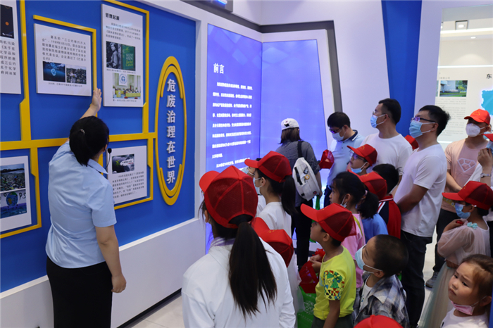 在展厅内,衡水睿韬专职讲解人员先后讲解了我国环保事业发展二十年历程、工业危险废物的界定、危险废物处置工艺及流程等专业知识,并组织观看了环保宣传片。