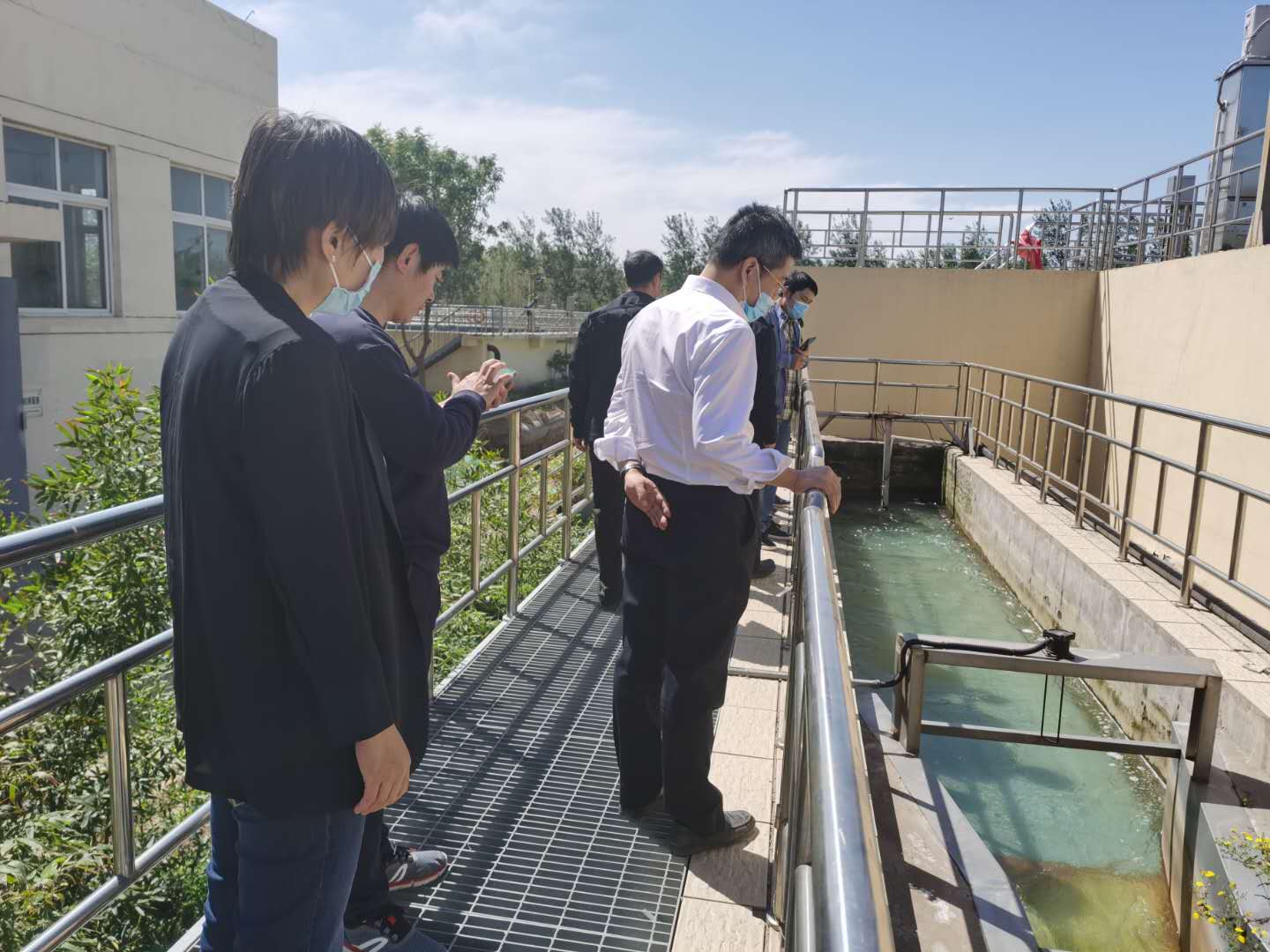 2020年5月11日,廊坊经济技术开发区供水中心污水处理厂接待了由廊坊市环保局、廊坊开发区环保局、海河局监测与科研中心、环境规划院、中国人民大学环境学院组成的考察团,共9人。在对污水处理厂处理工艺进行初步了解后,重点对污水处理厂细格栅及旋流沉砂池、SBR反应池、翻板滤池、明渠进行了参观考察,详细了解污水在各个处理环节的处理效果,并进水口在线监测设备上调取了近期的水质检测记录。