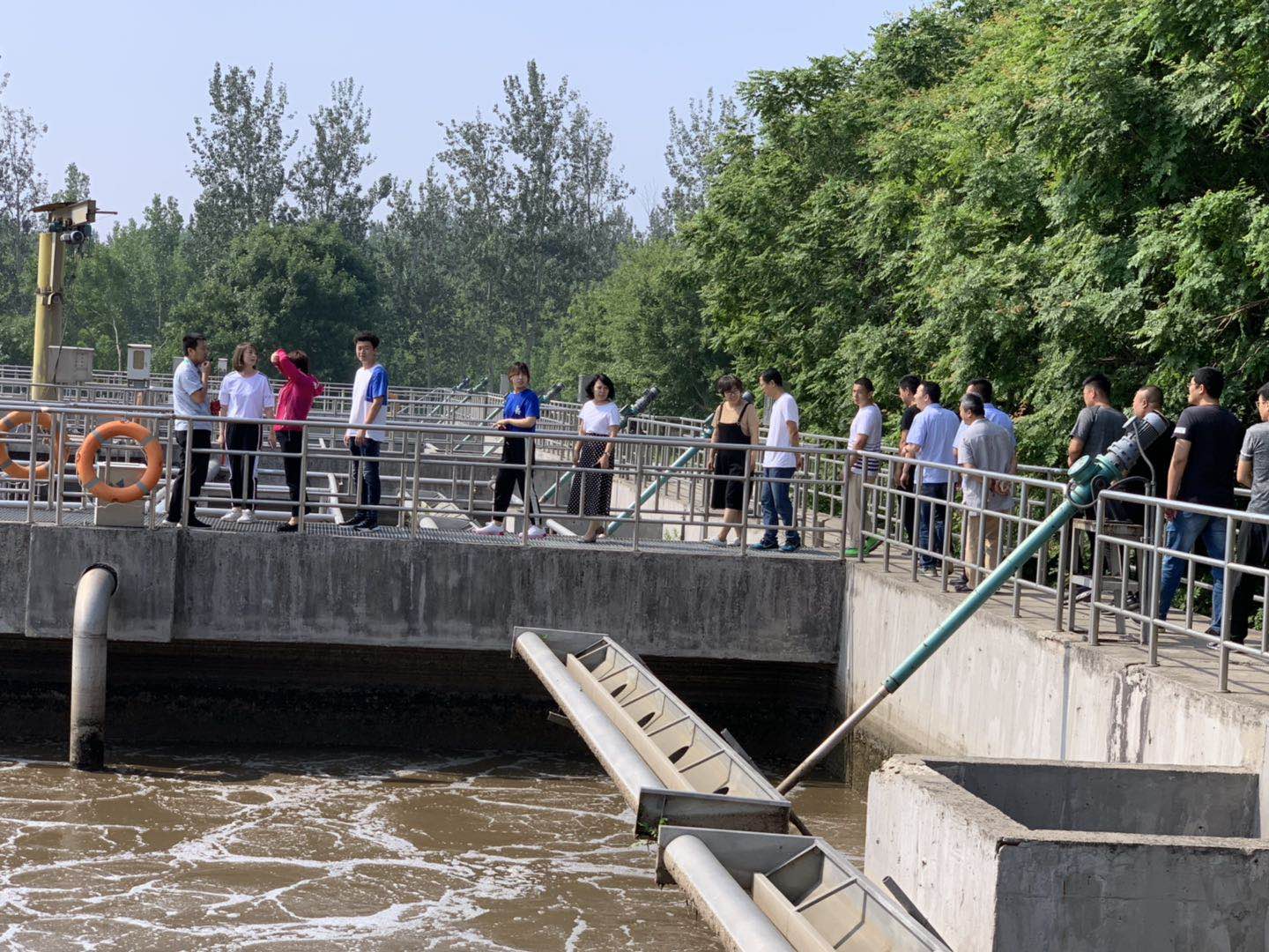 由讲解员带领参观人员按SBR反应池、鼓风机房、细格栅及旋流沉砂池、脱水机房、陶粒生物滤池、V型滤池、水源热泵系统、中水泵房、明渠的顺序进行了参观,详细了解污水在各个处理环节的处理效果,并在明渠取样与手中的矿泉水进行比较,对廊坊经济技术开发区供水中心污水处理厂的污水处理效果进行了充分肯定。参观结束后在污水处理厂会议室进行了简单交流。