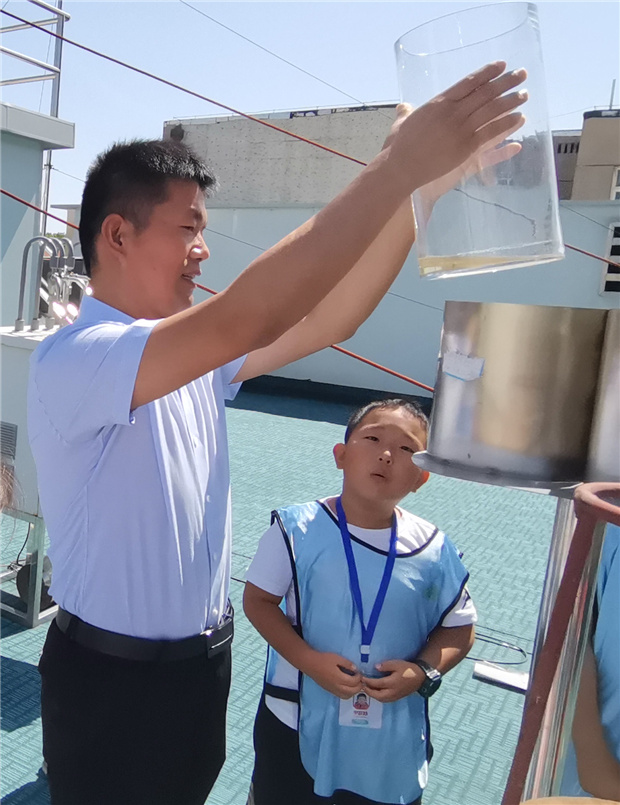 在环境空气质量自动监测亭,“未来科学家”们实地学习了PM2.5和PM10切割器的异同之处和设备仪器的工作原理,通过纸带上的圆点了解了近期的空气质量数据。