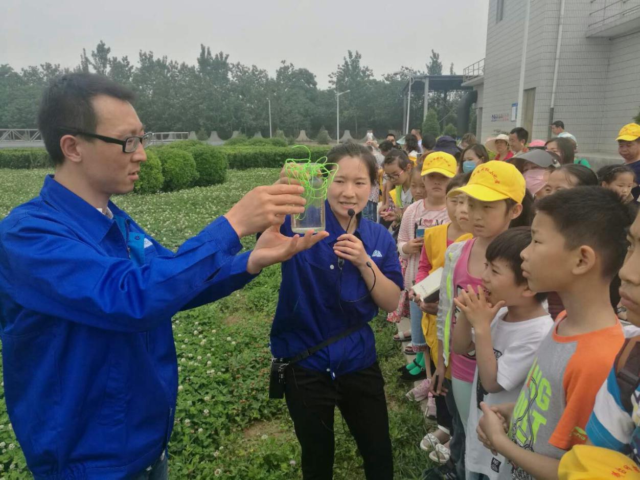 随后,小记者们跟随宣讲员来到了生物反应池。“这里就像是一个‘微生物王国’,大量的‘菌宝宝’、‘虫宝宝’在里面自由快乐地成长,污水中的磷、氮等有机污染物就是它们的食品,为了摄取足够的营养,它们要狼吞虎咽,一刻不停地吃光所有污染物,从而使水质得到进一步净化。”宣讲员孙宏虹生动形象的讲解赢得了小记者及家长的阵阵掌声。