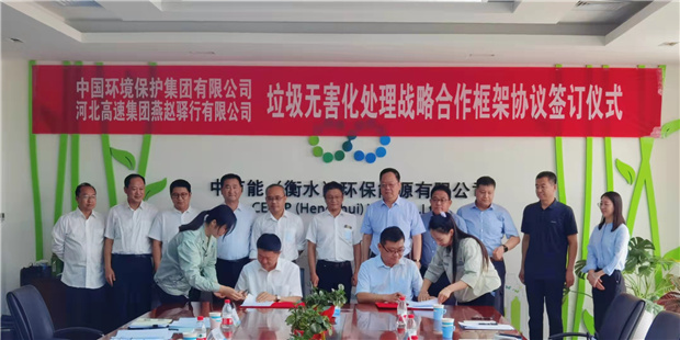 2021年9月3日,中国环境保护集团有限公司(以下简称“中国环保”)与河北高速集团燕赵驿行有限公司(以下简称“燕赵驿行公司”)战略合作框架协议签约仪式在中节能(衡水)环保能源有限公司隆重举行。中国环保总经理魏民乐、燕赵驿行公司总经理任清耀出席活动,并共同签署了垃圾无害化处理战略合作框架协议。
