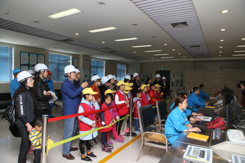 随后,工作人员带领大家进入厂区参观,参观的第一站是垃圾爪控制室,小记者们通过望远镜近距离观察垃圾仓内的垃圾,看见巨大的抓斗式起重机抓着满满的垃圾送入炉膛焚烧时,小记者们露出了惊讶的表情,家长们也不断的对垃圾焚烧的相关知识向工作人员进行询问。为了让大家更直观地了解垃圾焚烧的过程,工作人员带领大家进入了“主控室”,通过工作人员的介绍,让大家了解到生活垃圾是由市环卫处运送至垃圾焚烧公司,经汽车衡计量后送入垃圾仓,再经过抓斗式起重机及给料装置送入炉膛焚烧,焚烧产生的热能通过汽轮发电机组转化为电能送到千家万户。通过现场参观,使每组家庭对垃圾焚烧有了更一进步的了解,引导大家转变消费观念,减少垃圾制造,培养绿色低碳的环保生活习惯。