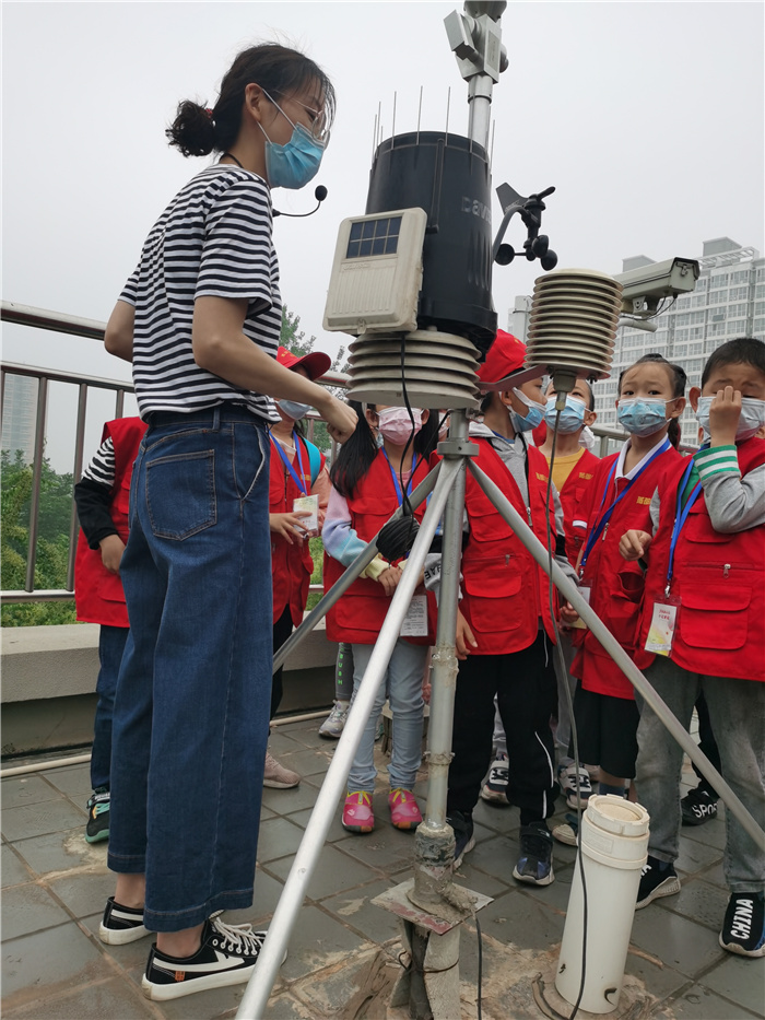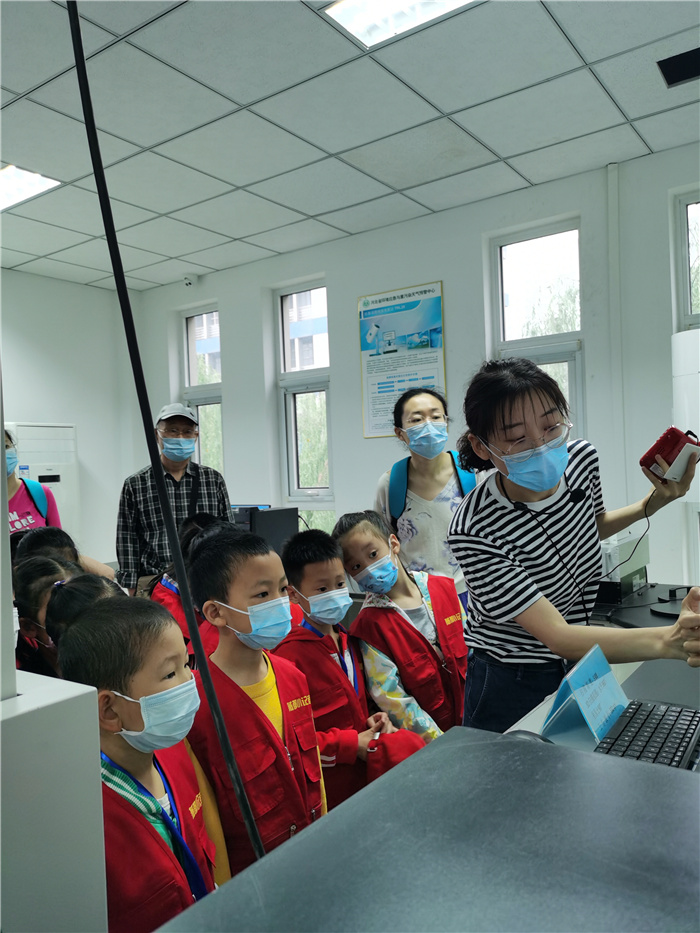 中心工作人员向小记者讲解空气质量实时监测仪器工作原理