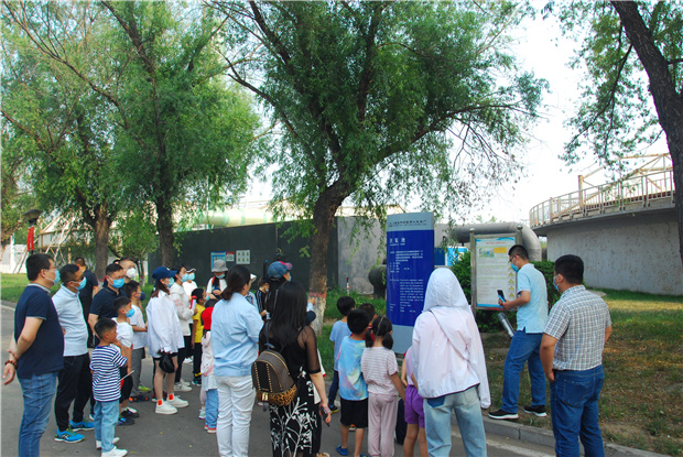 工作人员按照污水处理工艺流程进行现场讲解,从污水的来源、处理工艺流程,到处理后的中水如何再利用,为大家上了一堂丰富多彩的生态环保教育课。