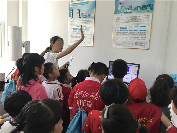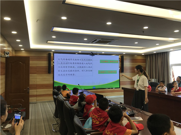 通过PPT展示向参观者讲解大气污染及PM2.5相关知识