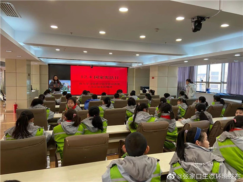 为推进生态环境体验教育,提高社会各界生态环保意识,普及《中华人民共和国宪法》及生态环境相关法律法规,引导公众带动身边的人共同保护环境,低碳生活,减少污染,为打赢污染防治攻坚战营造氛围。2020年12月4日,国家宪法日之际,张家口市生态环境局组织书院巷小学64名学生走进张家口市环境监控中心,开展一堂生动的环保知识教育课。
