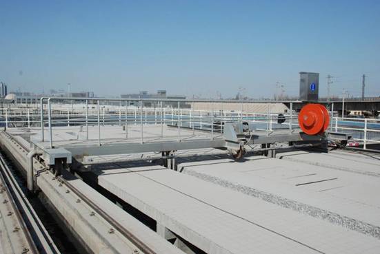 污水经过曝气池处理后,完成了污染物的去除,曝气池混合液进入二次沉淀池进行二次沉淀泥水分离。二沉池采用全桥式刮泥机,排除底部污泥。