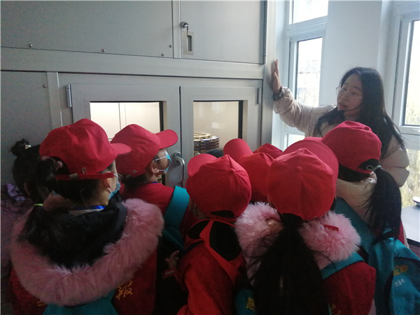 中心工作人员通过图片向小记者讲解大气污染及PM2.5相关知识