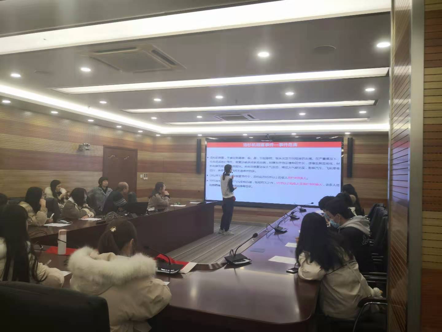 通过PPT展示向参观者讲解大气污染及PM2.5、O3相关知识